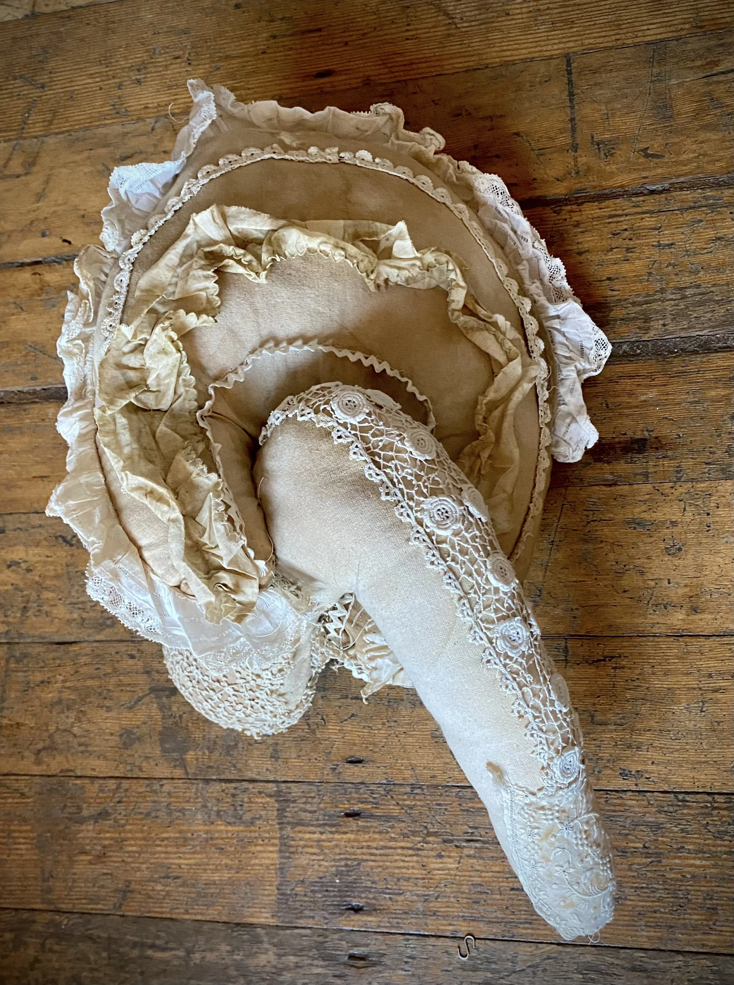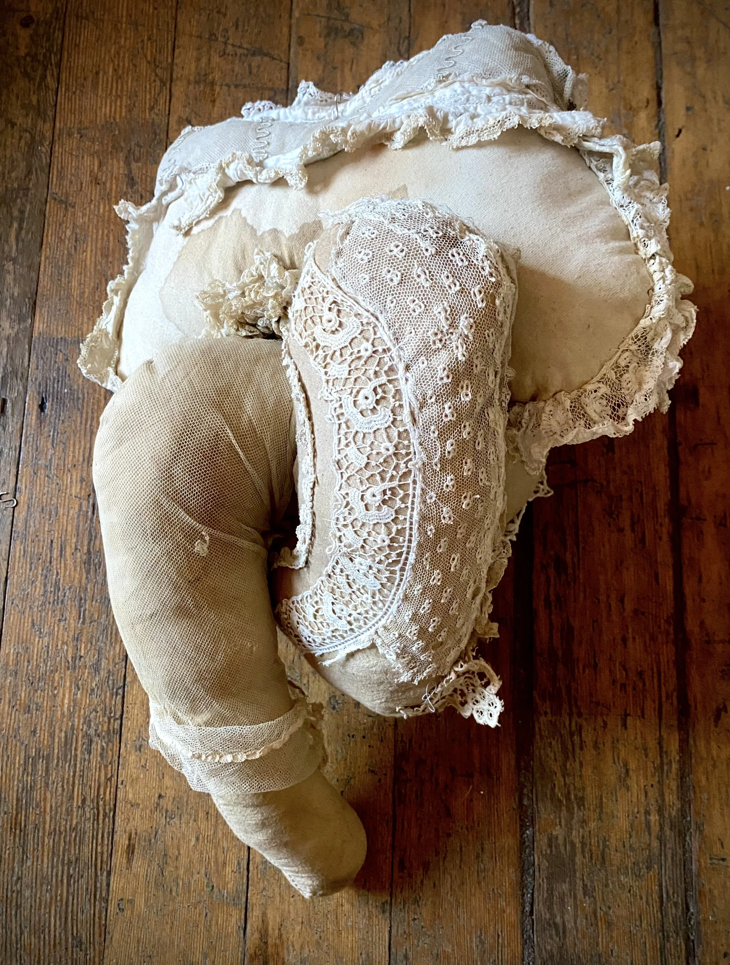 These art objects function as tactile memory vessels—repositories of time, emotion, and embodied experience. Constructed from soft, intimate materials such as fabric, aged lace, sponge, and hair, their worn and stained surfaces evoke the erosive passage of time. These materials, fragile and familiar, mirror the malleable nature of memory itself: unstable, shifting, and continually reshaped by sensation and context. Far from static artifacts, these objects are meant to be touched, handled, and physically engaged with. Their material presence invites a haptic encounter, drawing viewers into a shared space of sensory remembrance. This dynamic relationship resonates with theorist Karen Barad’s concept of intra-action of —where meaning emerges through relational encounters rather than within isolated entities. Here, memory is not passively retrieved but actively co-created through touch, presence, and interaction. Each viewer becomes a participant in this unfolding process. As the objects are activated through tactile engagement, memories are not only recalled—they are reawakened and reconfigured. This echoes Marianne Hirsch’s notion of ‘postmemory’ where the past is transmitted not only through knowledge but through affective, embodied proximity to remnants and traces. The artworks serve as those very traces—sites where personal and collective histories converge. Here the audience is invited to a mode of "interview-action"—a reciprocal exchange where the viewer is both interrogator and respondent. The object becomes a storyteller, but also a mirror, reflecting back fragments of the viewer's own subjectivity. In this encounter, the distinction between artist, object, and audience begins to dissolve, allowing memory to surface not as static history, but as living, breathing experience. Ultimately, these works resist closure. They remain open, generative, and incomplete until touched—until felt. Through each encounter, they invite not only recollection, but transformation: of memory, of meaning, and of self.